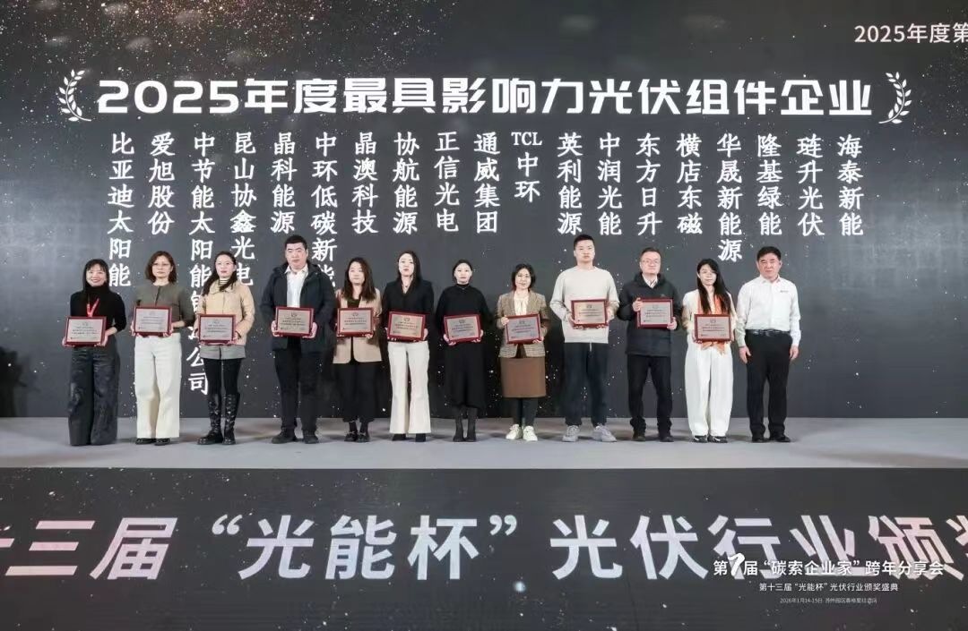 Recently, the 7th “Carbon Quest” Entrepreneur Year-End Sharing Forum and the 13th “Solar Energy Cup” Award Ceremony were successfully held in Suzhou. Thanks to its outstanding performance in photovoltaic technology applications and product innovation, ZNSHINE SOLAR was honored with the 2025 “Solar Energy Cup” Award for Most Influential Photovoltaic Module Company. This prestigious recognition fully affirms ZNSHINE SOLAR’s comprehensive strength and market influence within the PV industry, while also highlighting its important role in promoting high-quality and sustainable industry development.